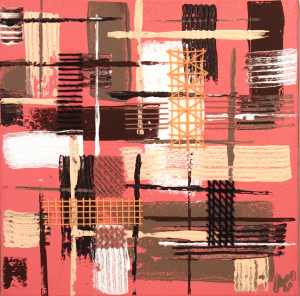 Penture acrylique abstrait sur toile, broderie abstraite fils de coton, 30 x 30 cm