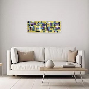Peinture acrylique abstraite sur toile, broderie abstraite fils de coton, 90 x 30 cm -DISPONIBLE BOUTIQUE-