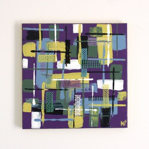 Peinture acrylique abstraite sur toile, broderie abstraite fils de coton, 40 x 40 cm