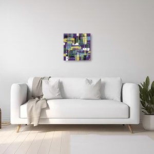 Peinture acrylique abstraite sur toile, broderie abstraite fils de coton, 40 x 40 cm -DISPONIBLE BOUTIQUE-