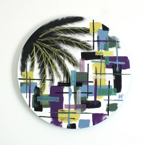 Peinture acrylique abstraite et figurative sur toile, broderie abstraite et figurative fils de coton, 50 cm de diamètre -DISPONIBLE BOUTIQUE-