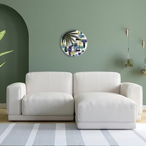 Peinture acrylique abstraite et figurative sur toile, broderie abstraite et figurative fils de coton, 50 cm de diamètre -DISPONIBLE BOUTIQUE-