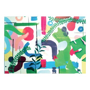 Peinture abstraite et végétale sur toile, Collaboration avec la designer Julie Bertaud, 120 x 76 cm