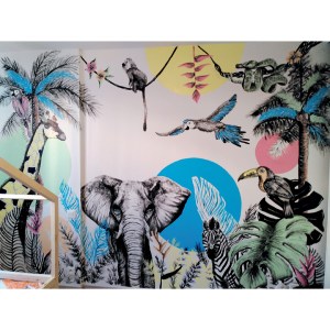 Peinture murale figurative noire et colorée, 324 x 249 cm