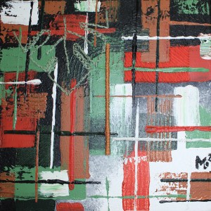 Peinture acrylique abstraite sur toile, broderie abstraite et figurative fils de coton, triptyque 30 x 30 cm