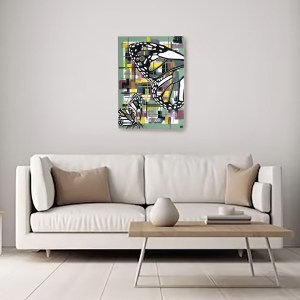 Peinture acrylique abstraite et figurative sur toile, broderie abstraite fils de coton, 50 x 70 cm -DISPONIBLE BOUTIQUE-