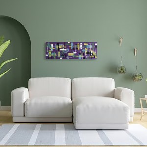 Peinture acrylique abstraite sur toile, broderie abstraite et figurative fils de coton, 120 x 40 cm -DISPONIBLE BOUTIQUE-