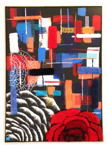 Triptyque Evolution d’une toile Peinture, broderie et tufting abstraits et figuratifs, 50 x 70 cm -DISPONIBLE BOUTIQUE-