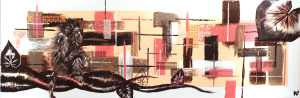 Peinture acrylique abstraite et figurative sur toile, broderie abstraite et figurative au fils de coton